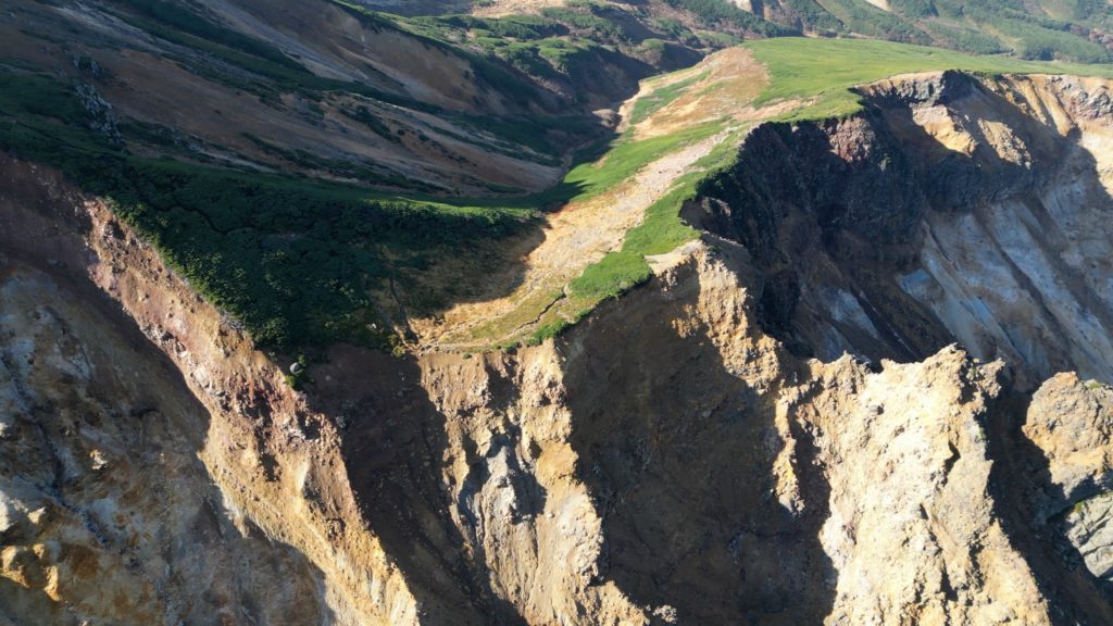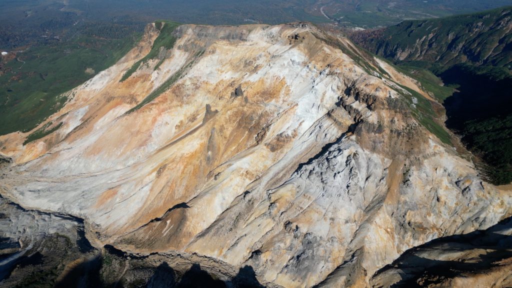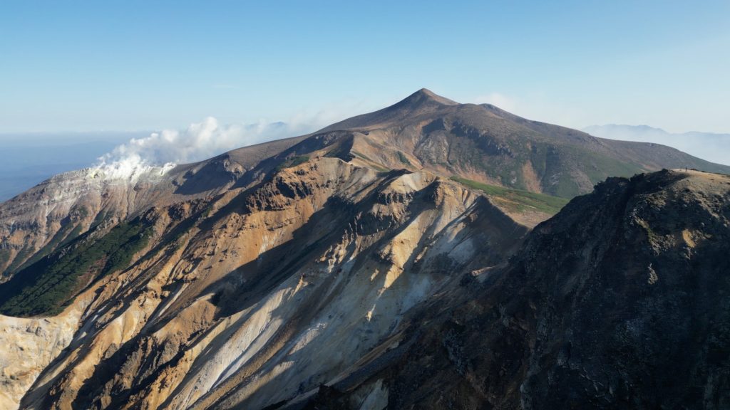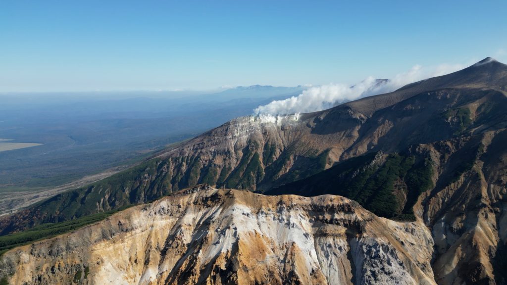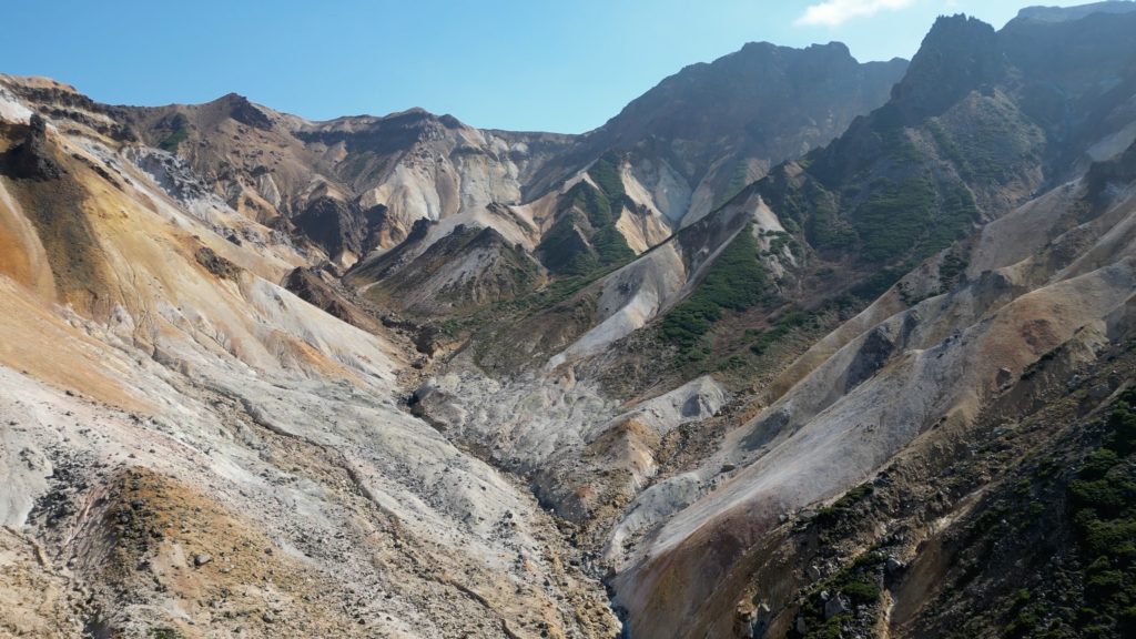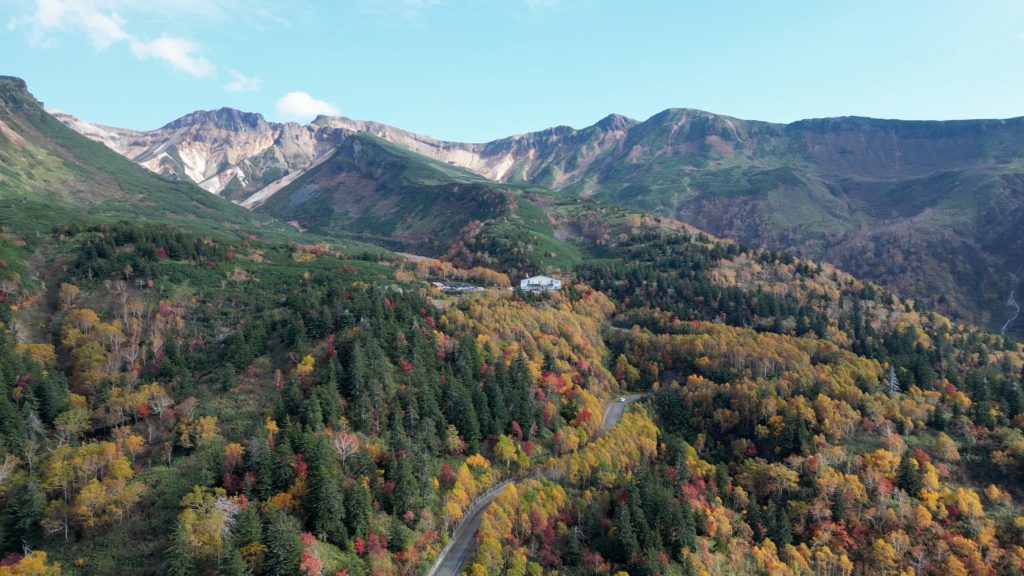 紅葉狩りを兼ねて、十勝岳温泉からピストンしました。短時間でしたが気持ちよく歩くことができました。登山口周りの紅葉はピークを迎えていました。大雪山系・十勝岳連峰のふもとにある十勝岳温泉郷の紅葉はいま見ごろを迎えています。十勝岳温泉郷の背景にあり、三段山、上ホロカメットク山、上富良野岳に囲まれる谷間地肌むき出しの荒々しい岩壁、侵食で深く切れ込んだ谷は、ヌッカクシ火口(安政火口)と呼ばれ過去にあった火山の大爆発によってできた十勝岳連峰を実感できます。ふもとの紅葉と背景の十勝岳連峰が調和して、美しい景色を見せてくれています。上ホロカメットク山の山頂からの映像では、十勝岳連峰の美しい風景を見ることができます。