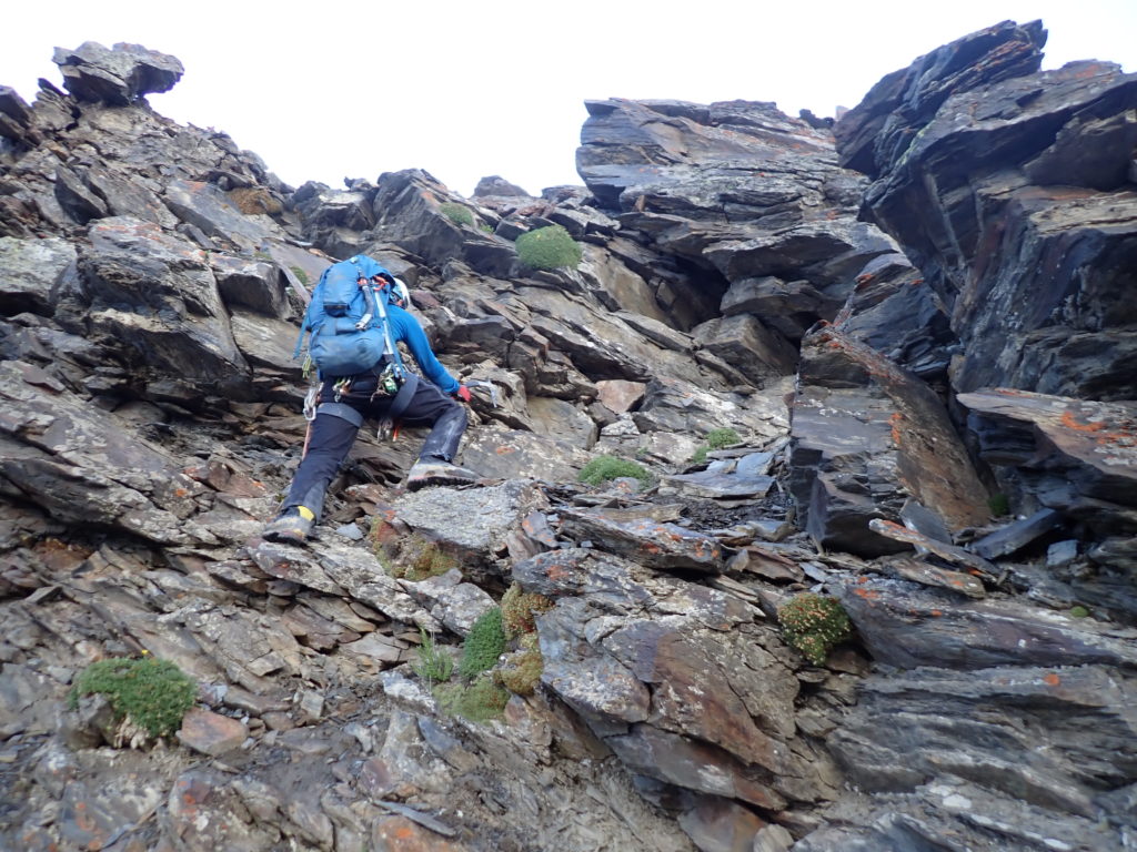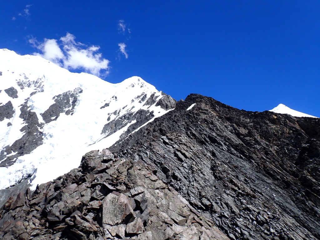 5000mを超えても積雪が無く、急峻なガレが延々と続きます。あらゆる事態に備え全装備での登高がひたすら続き、順応も十分でない為、隊長はともかく私は自分の登山史上かつてない消耗度合でした・・・