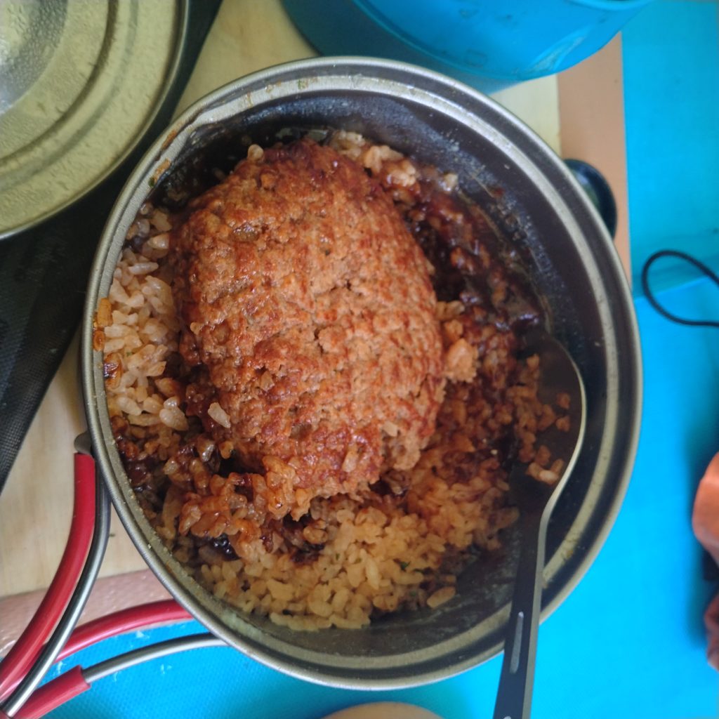 ガサツな写真ですが、これはアマノフーズ製フリーズドライのハンバークです。食料担当miyoが、カロリー消費が激しい高所において少しでもタンパク質を摂取する為、店頭販売が無いこれを見つけて買ってくれました。