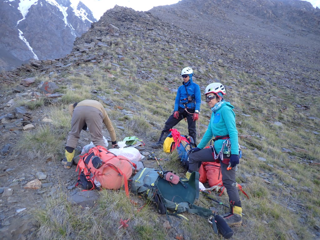 ABCで装備を整理し、尾根取付に到着。装備をデポしてABCに戻りました。明日はここから隊長oyamaと私がÇ1設営を目指し、yukikoとmatsuは順応の為、5000m程度まで登ってABCに戻る事になります。