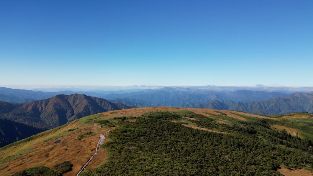 中ノ岐登山口からプリンスルートをピストンしてきました。天気に恵まれ山頂でのパノラマと草紅葉を楽しむことができました。平ヶ岳は新潟県と群馬県の境にそびえる標高2141mの山で、日本百名山の一つです。その名のとおり山頂部は平らな地形をしており、山名の由来もこれにちなんでいます。 山上は高層湿原が広がり、まるで楽園のような美しさを展開しています。