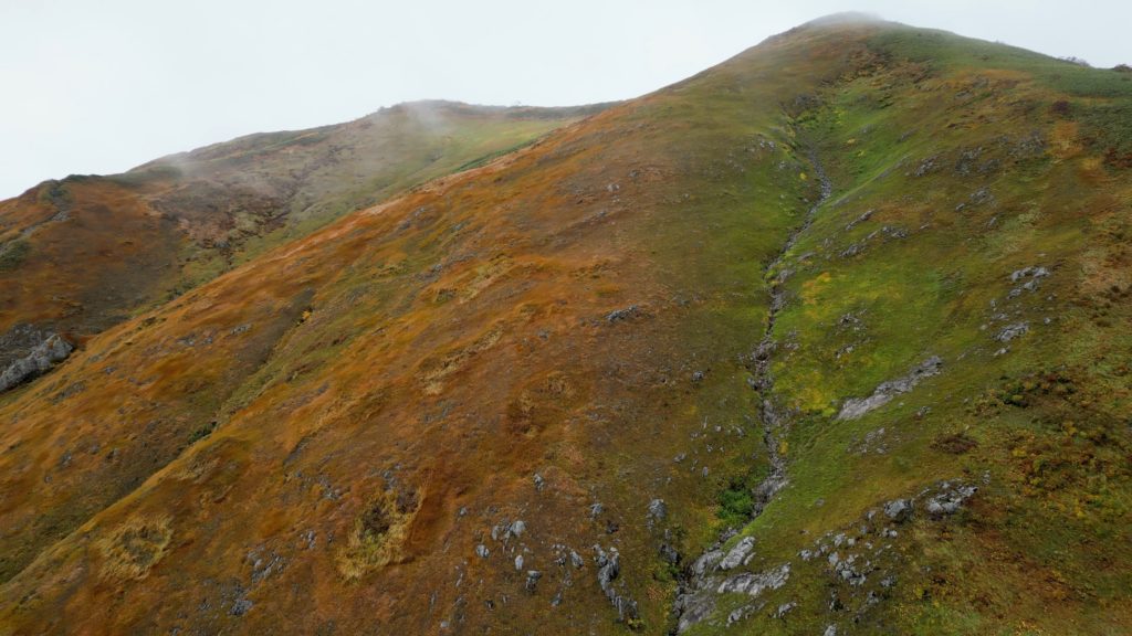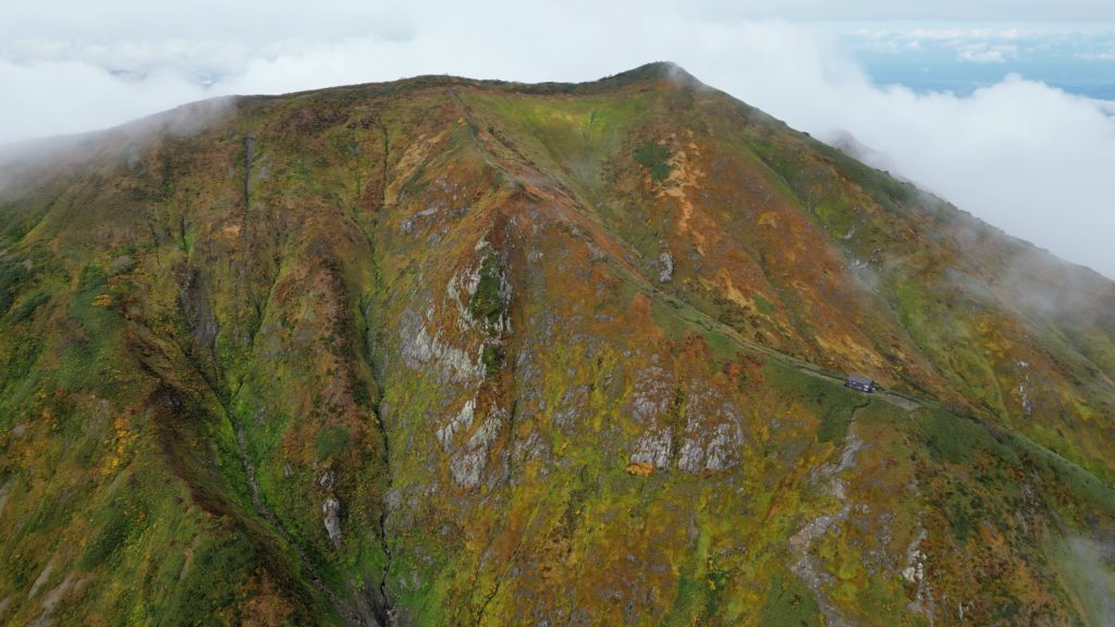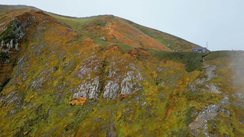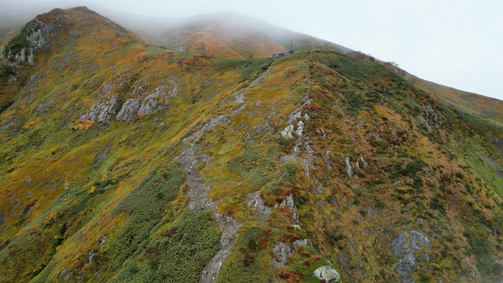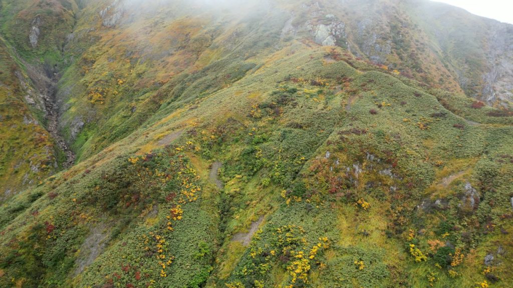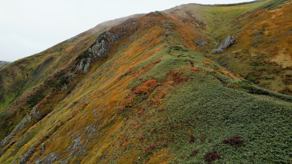 枝折峠からピストンしてきました。天気が悪く、終始、霧の中でしたが、山頂付近で一瞬だけ霧が晴れ、その合間に山肌の草紅葉を見ることができました。越後駒ケ岳は新潟県随一の米どころ、魚沼地方のシンボル的存在です。中ノ岳、八海山とともに越後三山(魚沼三山)の一座に数えられ、地元では魚沼駒ヶ岳とも呼ばれています。標高に比して森林限界が低く、上部の尾根筋は大きな展望と高山植物が楽しめる登山道が続いています。