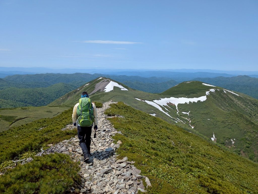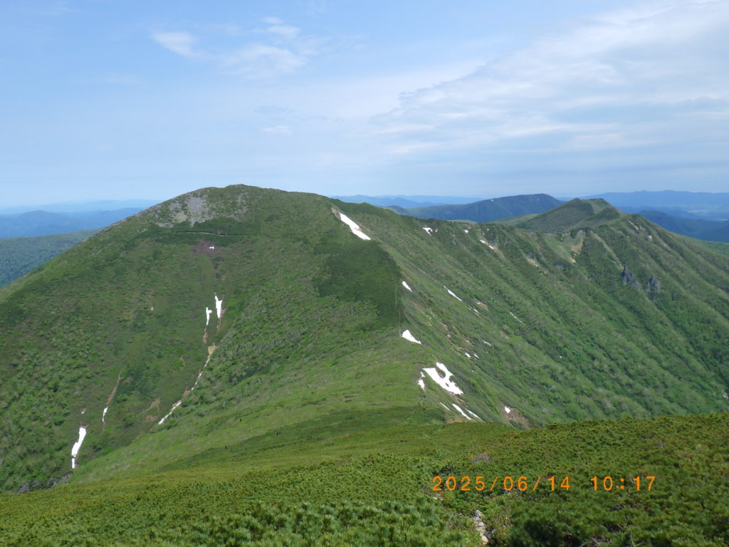 概ねなだらかな歩きやすい登山道で、花🌸🌺もそこそこあり、稜線上からは3つの山を見渡しながら歩け、何よりも遠くに見える十勝連峰〜大雪の山並みに感動した🥹🥹🥹