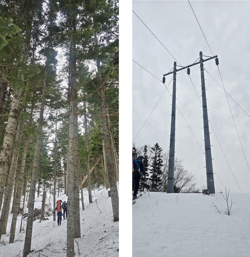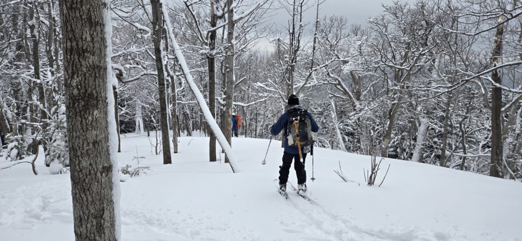 微妙な登り返しがタラタラあり、シールを付けるかどうか悩ましいが、結局送電線のポコ山を巻く時も付けたほうが楽で(直ぐに剥がすのだが)11時間行動の末、遠音別岳山行は幕を閉じた。