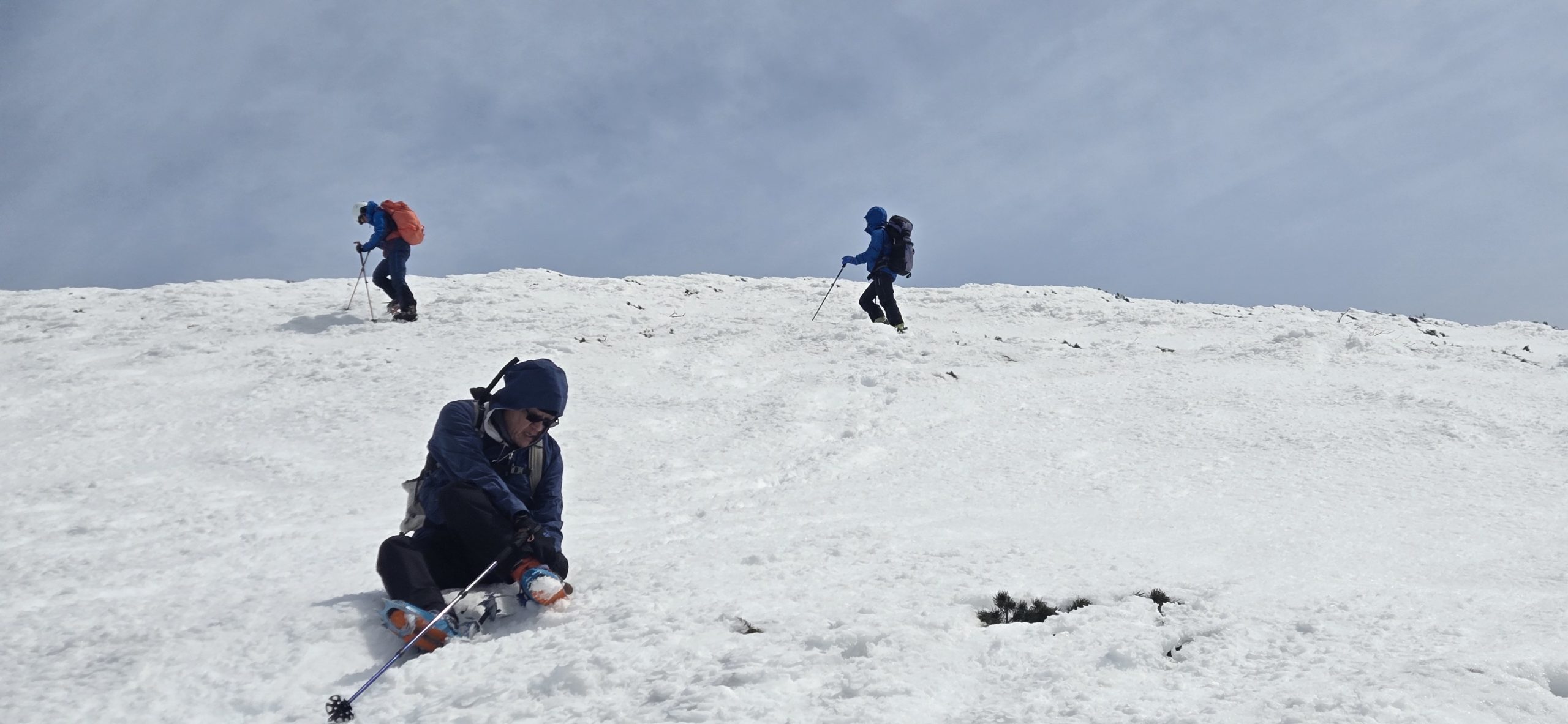 アイゼンに履き替える頃には風速20ⅿ/s以上かと思われる爆風と格闘。嫌でも体幹が鍛えられそうだった。