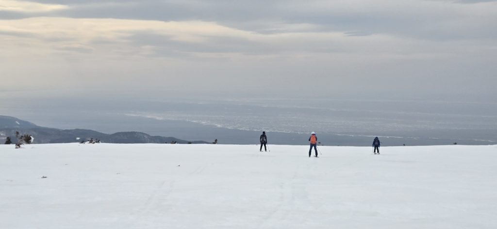 余韻に浸りつつ流氷を見ながら下山。滑りもそれなりに楽しめた。