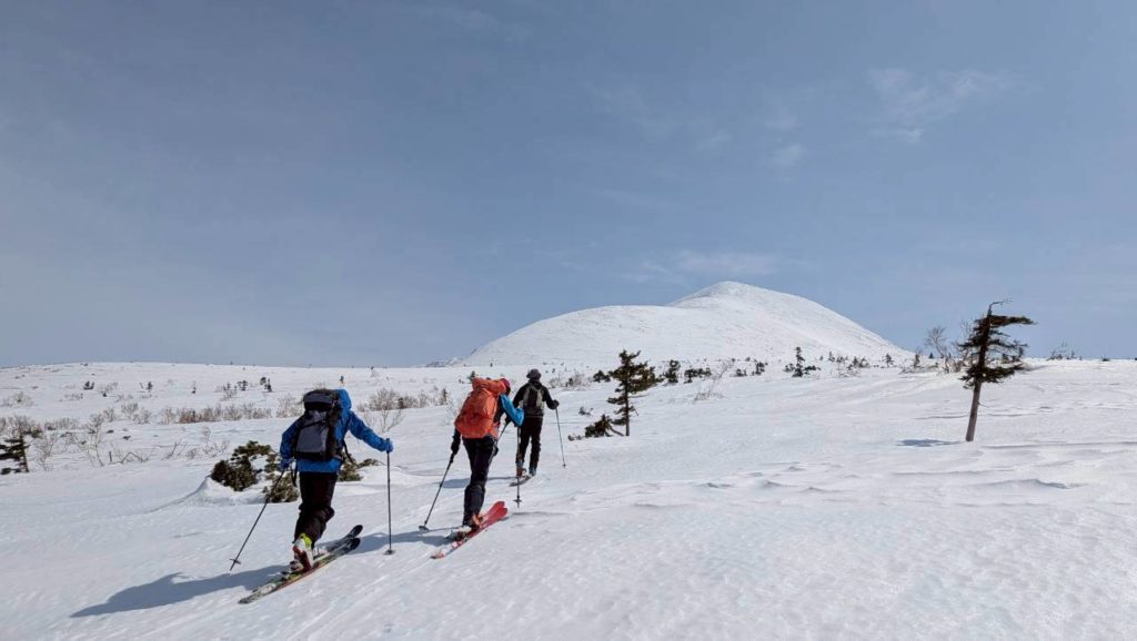 昨日撤退した地点より先まで来ると、遠音別岳が見えてきた。