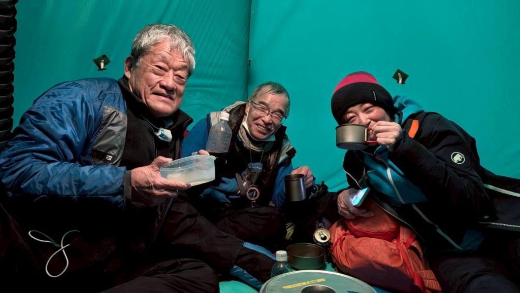 斜里の「来運水の学校」という宿にて、ジンギスカンを囲みながら作戦会議。翌日は知床岳の予定だったが、やはり遠音別岳の想いは捨てきれず、明日は好天予報だったのでもう一度アタックすることに。連泊可能になったのも有難かった。